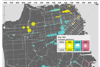 An interactive map showing the frustration experienced by passengers of the public transit systems of three cities