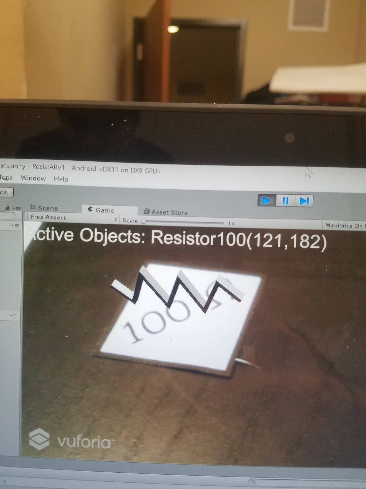 We first began with 3D printed chassis for the VuMark targets. These targets are identified and parsed by the program and cross checked against our cloud database on Vuforia. We then created 3D, textured, models in Blender that will hover over the VuMark targets. We then wrote the code in Unity that will calculate voltage and current values using concepts from vector calculus and matrix algebra.