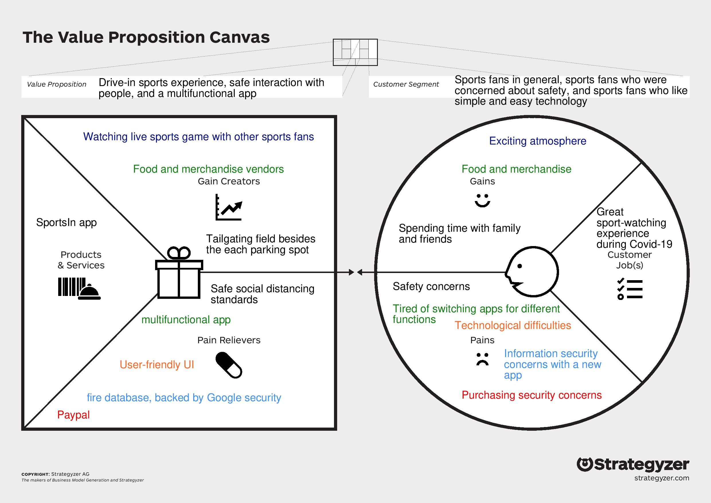 Sports In was built to occur at the parking lot of a major sporting venue which ensures that the venue will be utilized in some capacity. Our solution also addresses the multi-sensory experience as fans will be surrounded by the sights and sounds of a typical stadium with the option to also buy food that would be included in their ideal fan experience.